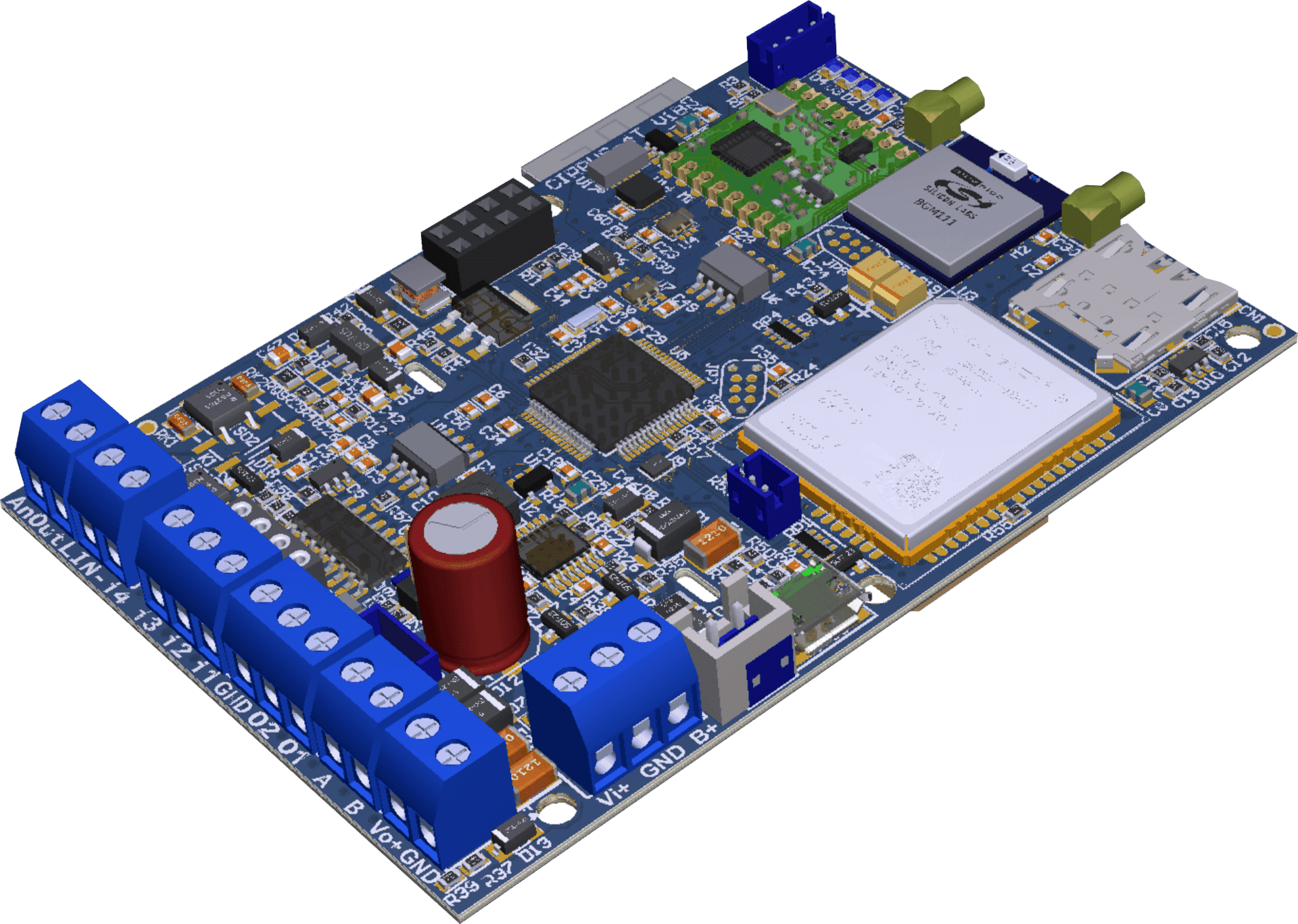 - Bare PCB Celular (EGPRS+NB-IOT+LTE-CAT-M1) alarm communicator with MMCX connector + antennas